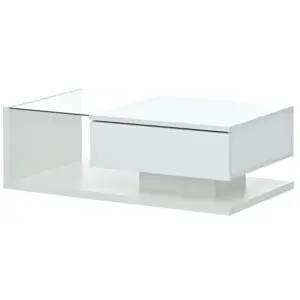 The coffee table top is crafted from 5mm tempered glass, engineered for durability and to prevent breakage. A large drawer with metal glides ensures smooth operation, providing ample storage for your daily essentials and keeping your space tidy.