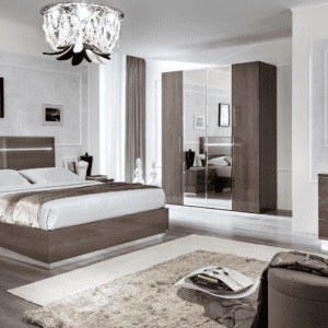 – Modern design with Art Deco elements in Silver Birch finish